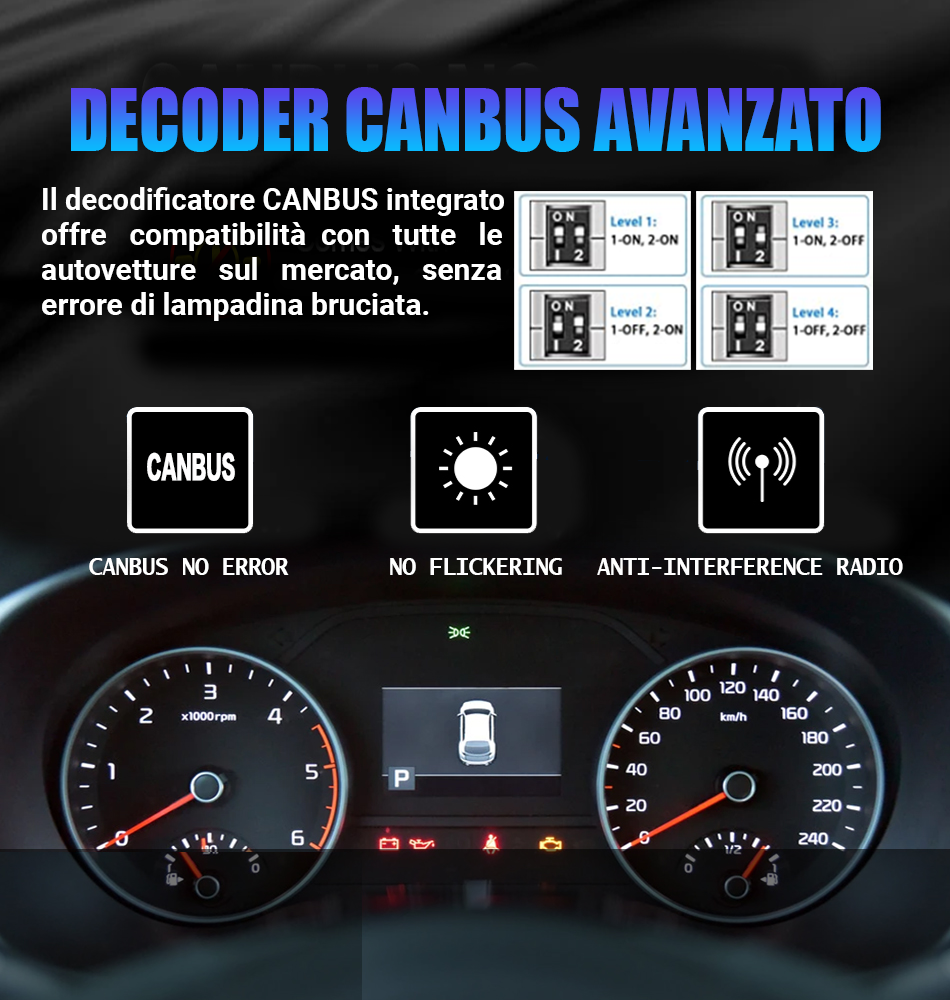 La serie LED-D© R4 è dotata di decoder CANBUS, un sistema anti-errore compatibile con tutte le auto presenti sul mercato.